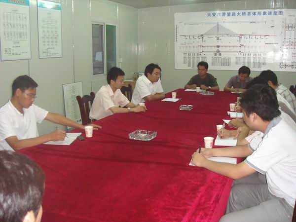 針對(duì)北岸引橋箱梁砼澆筑后,對(duì)成型構(gòu)件出現(xiàn)的問題,由全體技術(shù)人員先找原因討論解決辦法,隨后,崔總對(duì)所提出問題逐一進(jìn)行了原因分析,提出了解決的辦法。大家感到這種有針對(duì)性地培訓(xùn),接受的快,收效很大。最后,項(xiàng)目經(jīng)理江仲明要求在當(dāng)前工程沖刺關(guān)鍵時(shí)刻,所有技術(shù)人員要切實(shí)增強(qiáng)質(zhì)量意識(shí),強(qiáng)化質(zhì)量工作責(zé)任,加強(qiáng)質(zhì)量考核工作,并強(qiáng)調(diào)各部門、各作業(yè)隊(duì)要對(duì)檢查出的質(zhì)量問題嚴(yán)肅處理,認(rèn)真落實(shí)整改。