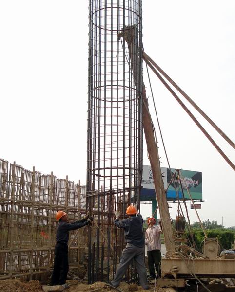 雖然我部一直面臨著征地問題、設計變更以及連續(xù)陰雨天氣等一系列不利因素的影響,但在項目經(jīng)理冷峰的正確領導下,在全體員工的共同努力下,合理配置、精心準備,按計劃如期開展了立柱施工工作。